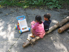 庭からもいっぱいきのこが生えてきて、おおはしゃぎの子供達。